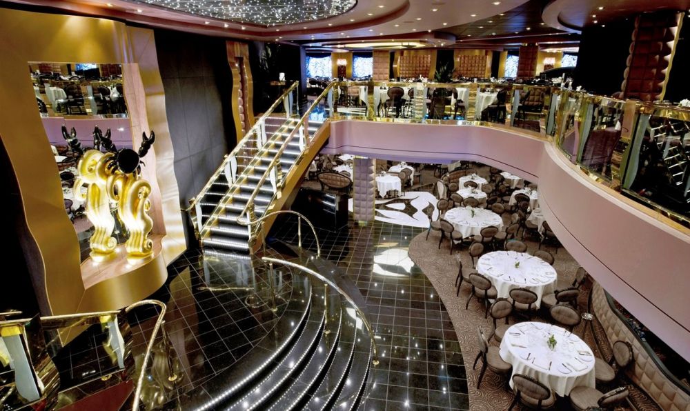 Корабът разполага с няколко заведения за хранене – основен ресторант, разположен на 2 дека, два бюфета на самообслужване, ала карт ресторанти: американски стек хаус Butcher’s Cut, Суши бар, Вила роса – панорамен ресторант.